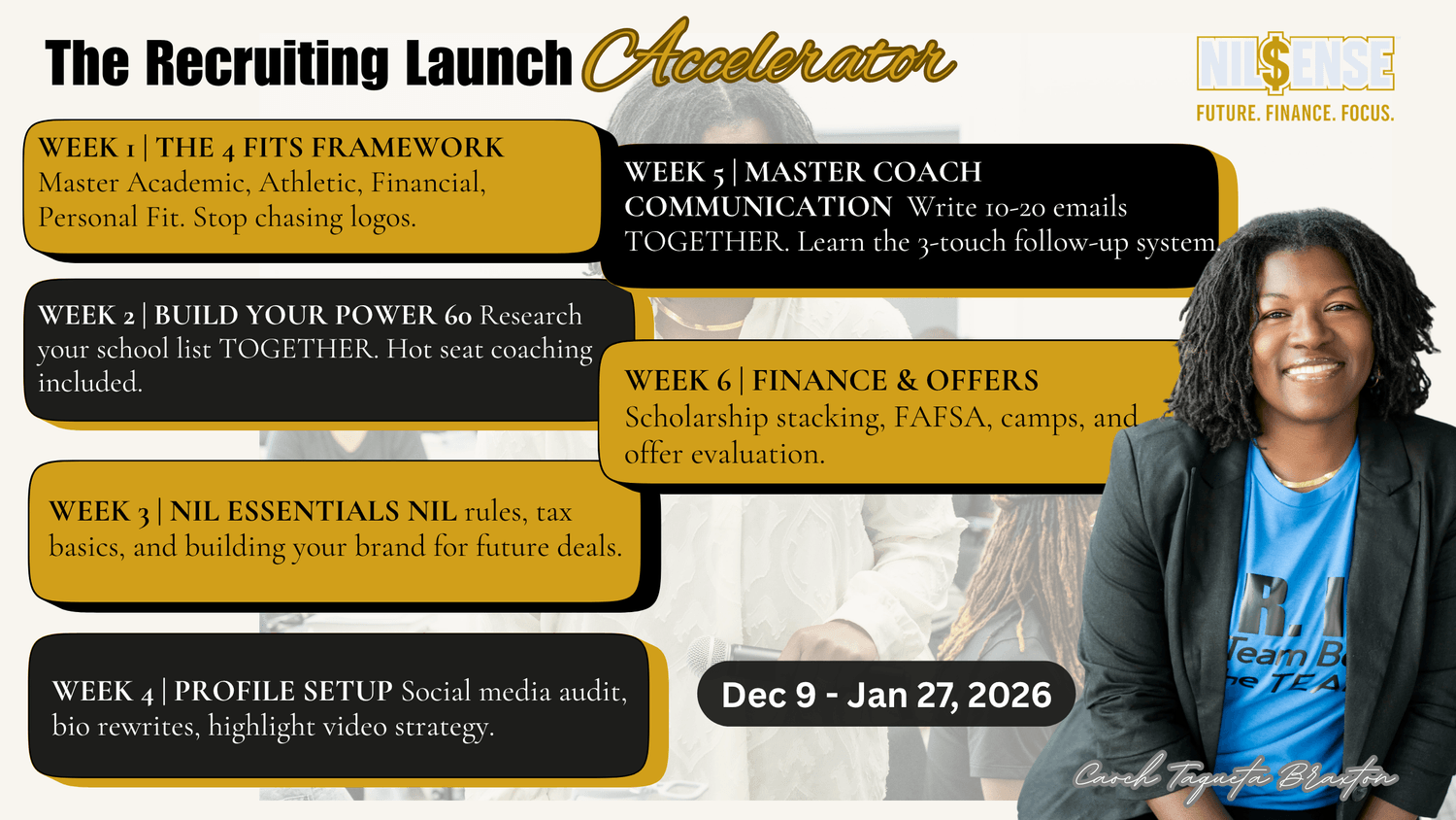 I understand that my information will be used in accordance with the [Terms and Conditions]. This program does not guarantee scholarship offers. Results vary based on athlete's academic and athletic profile. No refunds after Week 1.